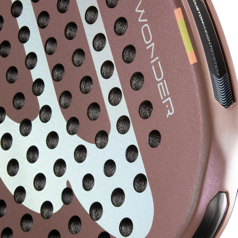 In your hand it feels light, nimble—yet there’s a surprising strength behind every swing. Wonder 2026 is Claudia Fernández’s paddle, born of youth and precision, forged for the advanced player who wants agility without giving up decisive performance. With its hybrid shape, Fibrix outer composition, Multieva core and the ExoFrame structure, this racket weaves together comfort, spin, and control. The rough 3D texture on the face bites into every ball; the Custom Weight lets you tweak the balance until it feels like an extension of you. At Prestige Padel, Wonder isn’t just for show—it’s for those who bring elegance into every rally and demand mastery in every shot.